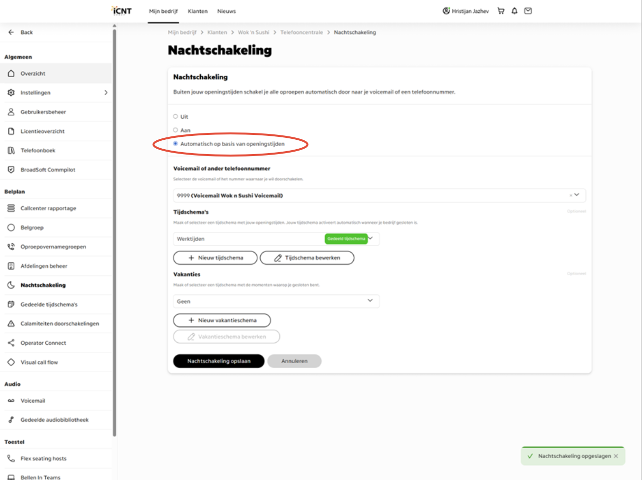 2. Check the NightSwitching and change it from